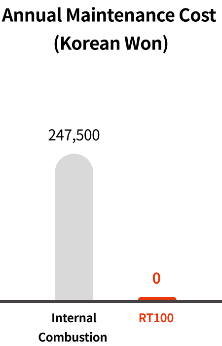 Using the RT100 for 4 hours a day over 100 days costs only about 34,560 KRW in electricity, and unlike internal combustion transport vehicles, it eliminates the need for oil, filters, and belt replacements, reducing maintenance costs.