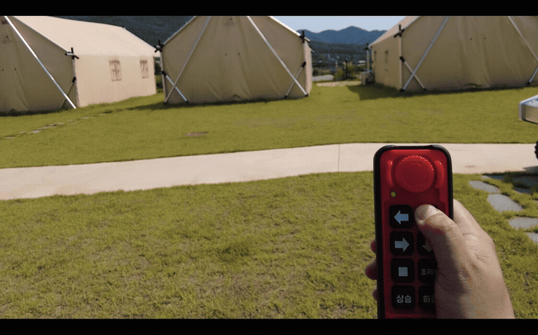 먼 거리에서도(최대 반경 80m) 리모컨으로 편리하게 전진, 후진, 회전, 저속 주행, 리프트/덤프 승하강까지 편하게 조종이 가능합니다