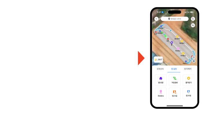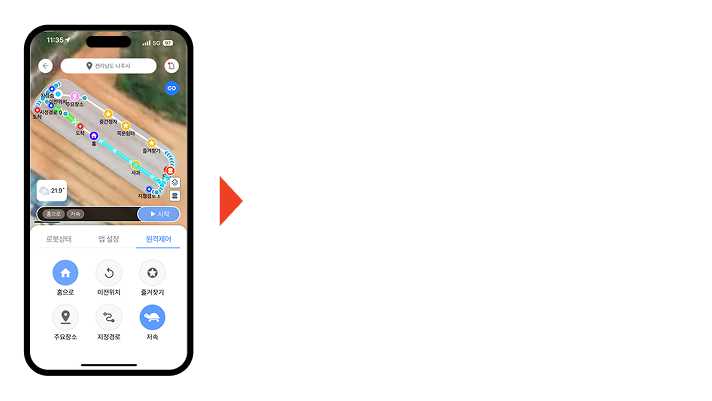 직접 조종하지 않아도 과수원 내 경로 매핑을 통해 최대 11개 지점 중 원하는 곳으로 알아서 이동합니다.