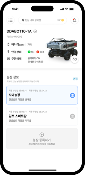 최대 10개의 농장을 하나의 로봇에 등록할 수 있어서