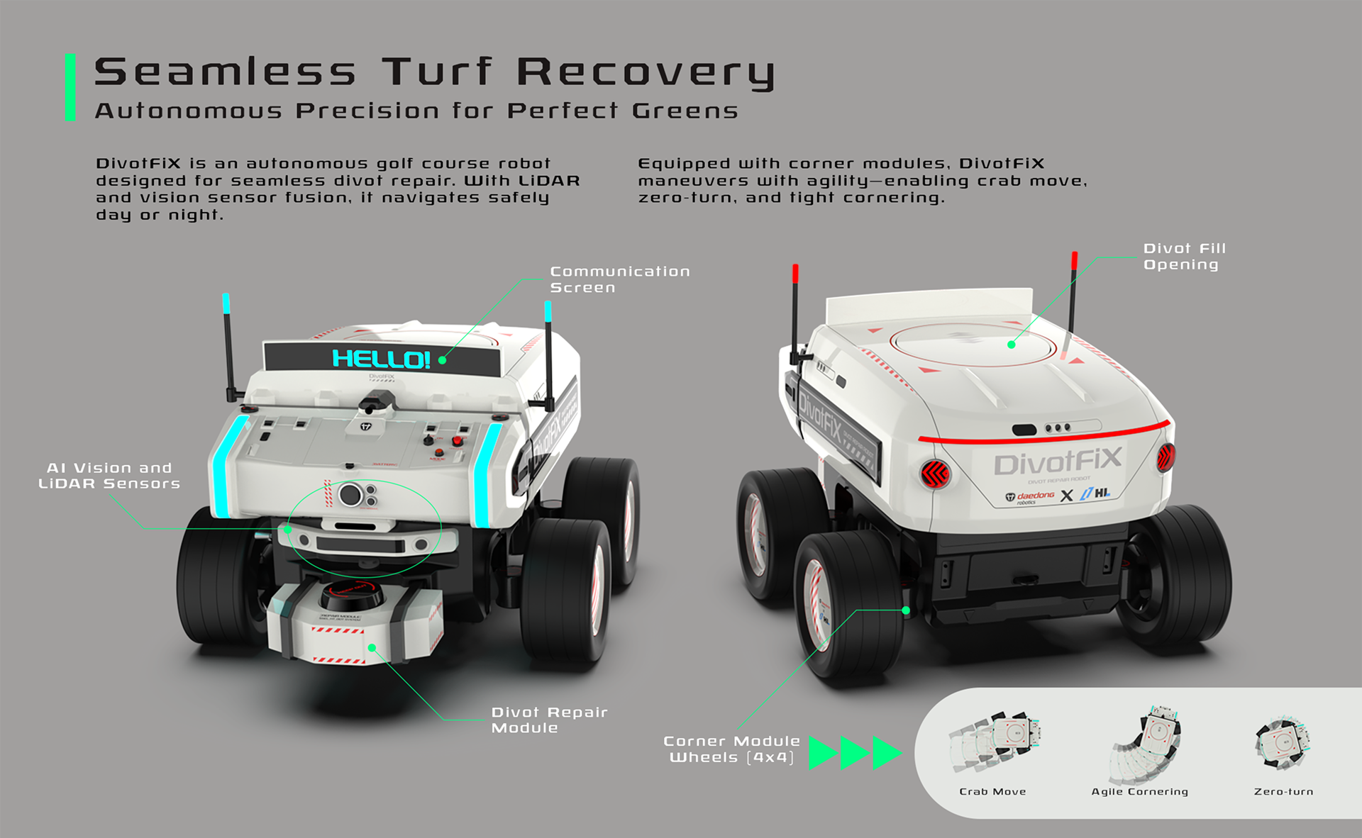 DivotFiX는 단순한 로봇이 아니라, 골프장 관리의 미래입니다.